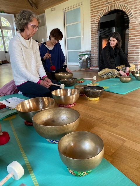 Apprentissage du massage sonore avec les bols chantants. Vous apprendrez à choisir vos bols, à ressentir leur vibration. Vous découvrirez comment poser vos bols sur des zones spécifiques du corps pour apporter un soulagement et un profond bien-être. Plus de 50 bols seront mis à votre disposition pour ce stage.