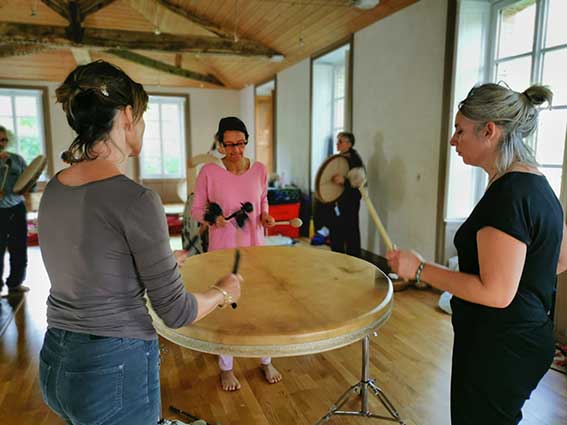 Stage de 3 jours sur l’approche sensible, ludique et intuitive du tambour dans un cadre personnel, ou pour pratiquer une relaxation par les sons. Vous aborderez tous types de dialogues créatifs possibles entre vous-même, le tambour et les éléments invisibles autour de nous. Ce stage n’est pas purement ‘chamanique’. Il sera aussi proposé de travailler la voix, le corps, le rythme, le jeu percussif ...