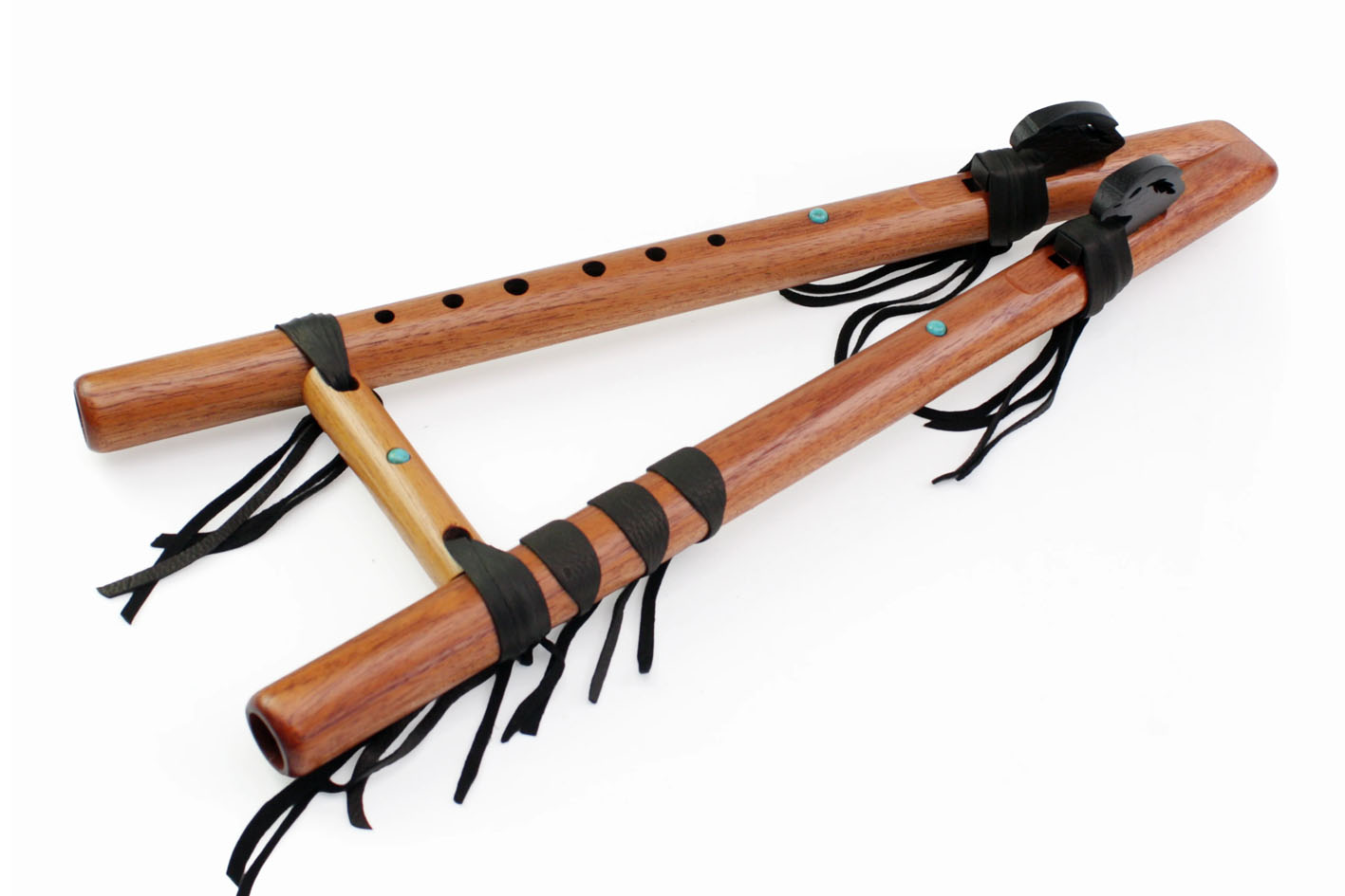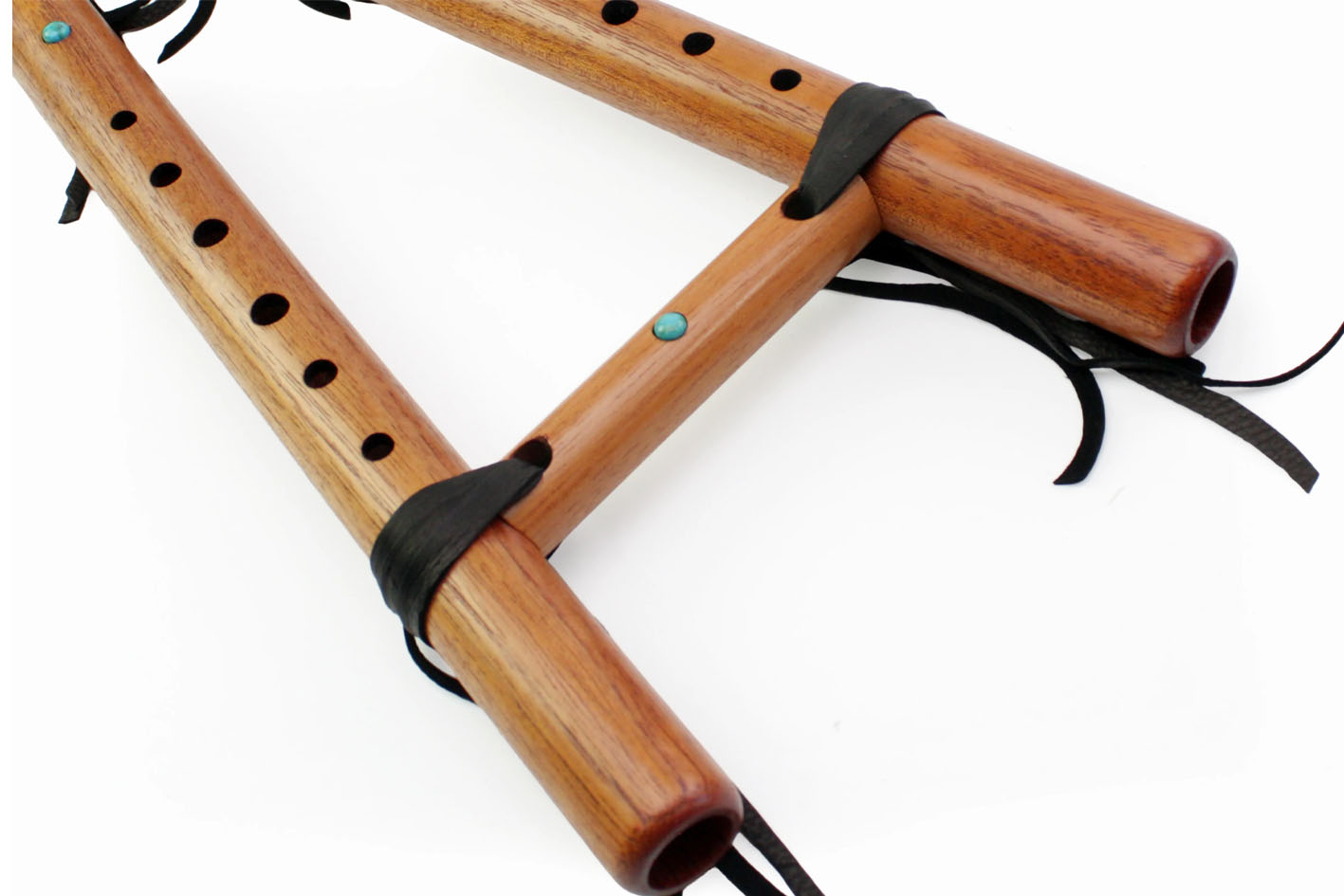 On aime la légèreté du cèdre espagnol qui vibre sous les doigts. La double flûte est ornée de 3 pierres de turquoise.