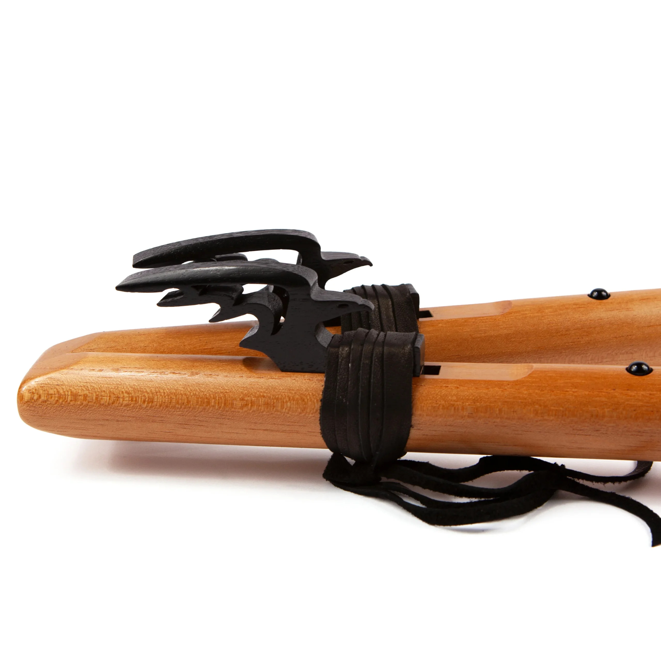 Il faut souffler dans les 2 trous assez proches l’un de l’autre pour obtenir le bourdon. Si vous voulez jouer seulement la flûte normale, il suffit de souffler dans l’embout de la flûte à trous.