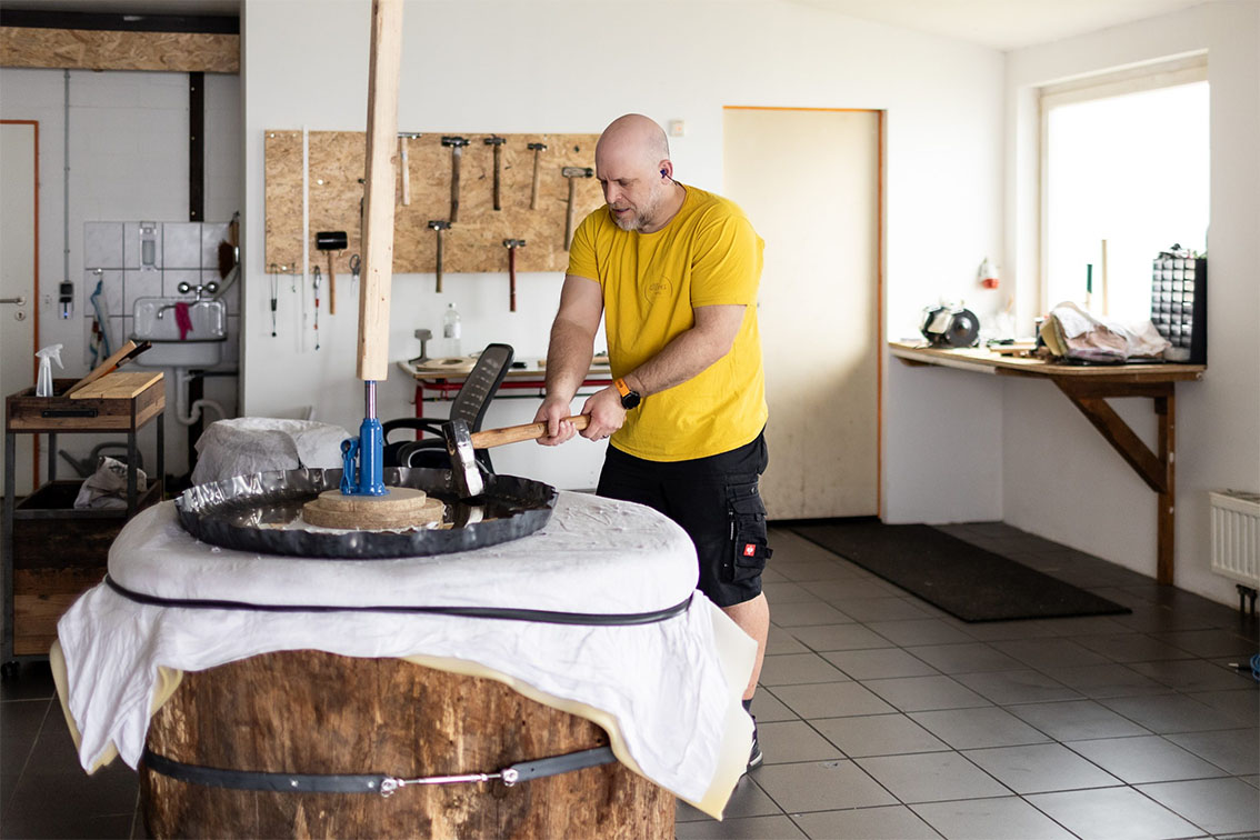 Voici un nouveau venu dans la galaxie des gongs, GOIKE GONG. On est séduit par leur timbre et leur bonne tenue de note. Achim est un ancien de chez Paiste et Oetken, il a créé avec sa femme sa petite forge en Allemagne.