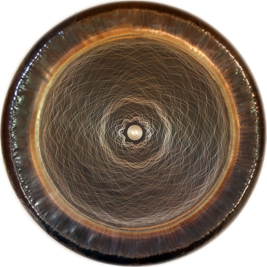 Gong en nickel silver (maillechort)Fabrication française (Bretagne) Gros coup de cœur pour ce fabricant de gong Breton, Rémi Bonneau. Le Nada Brahma est une œuvre d’art, les motifs comme des fils de vibration s’entremêlent et se propagent tel une onde cymatique. Coup de coeur personnel car il me rappelle mon enfance et le jeu du spirographe qui m’inspirait beaucoup plus que l’équerre du cours de maths 😉