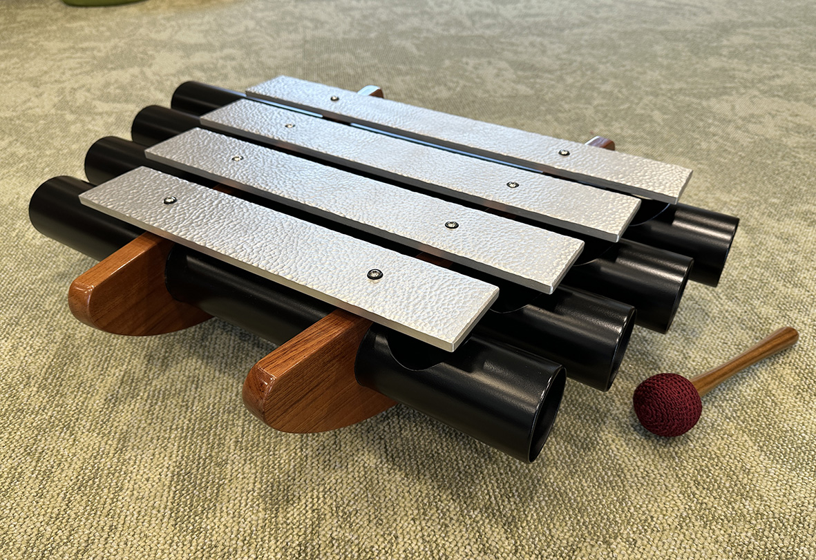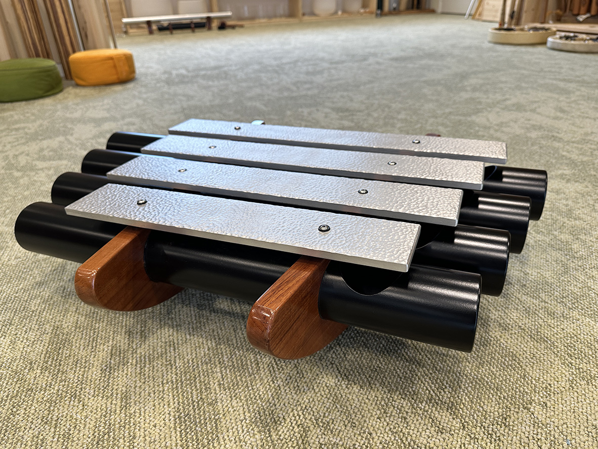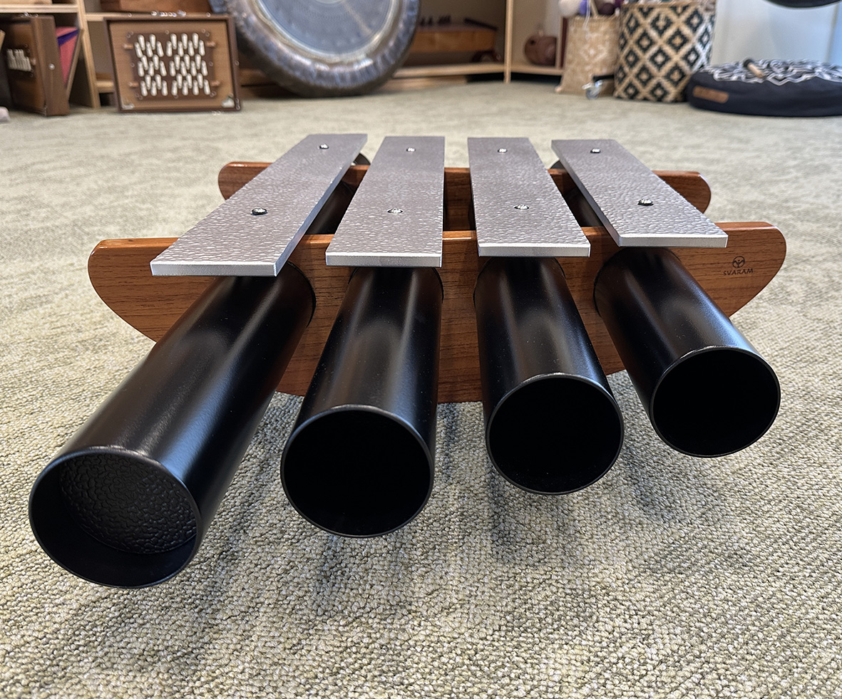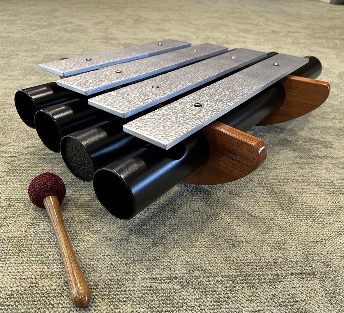 « C’est pendant un massage sonore à Auroville que j’ai entendu ces trois superbes notes s’envolant et emplissant l’atmosphère de sérénité, graves, puissants, subtils je ne connaissais rien de pareil ! Je découvre un quatuor de résonateurs de metalophones géants hyper puissants accordés sur le Do 256Hz. » Arnö